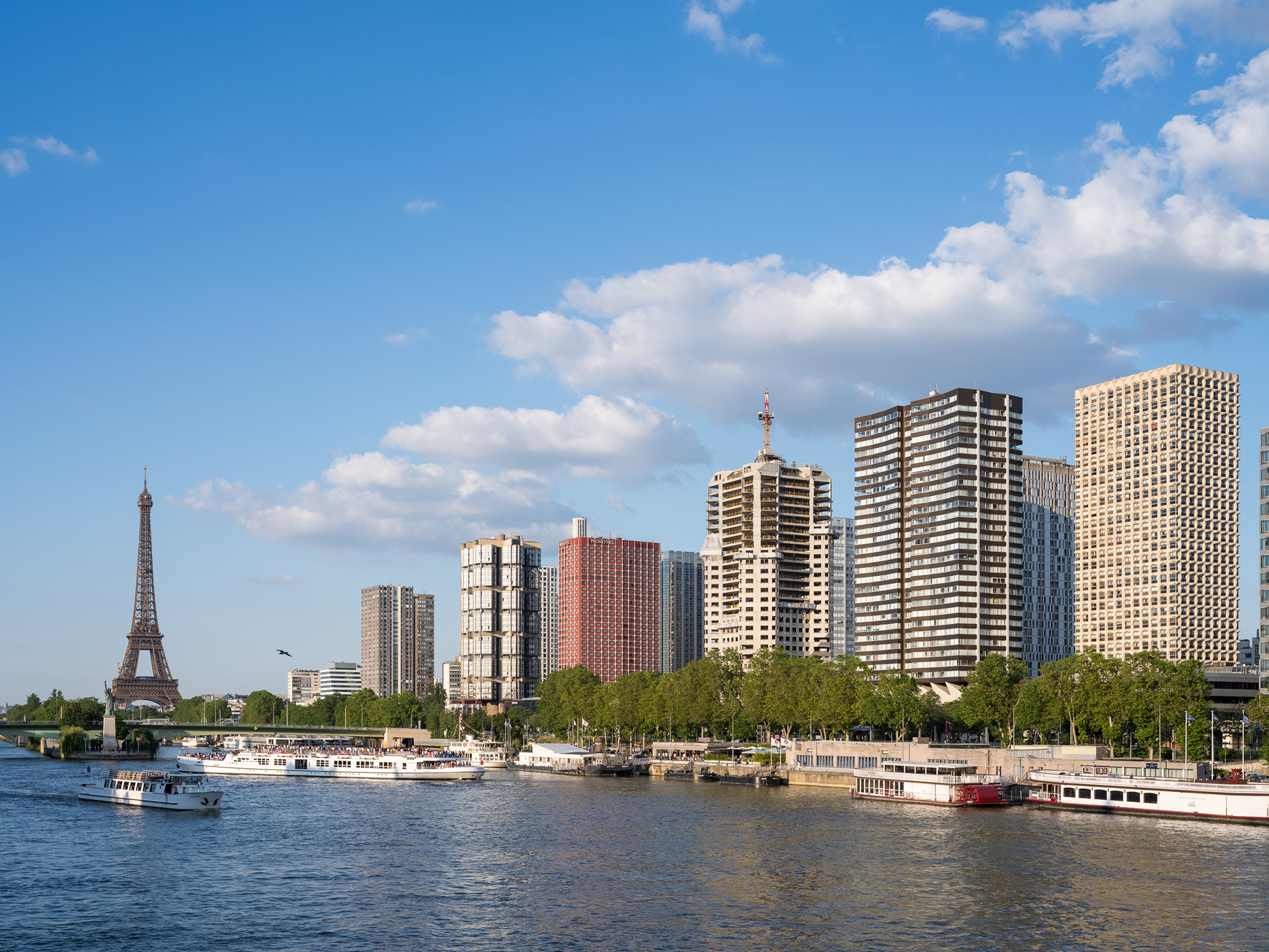Exemple de l’urbanisme sur dalle expérimenté dans les années 1960-1970, le quartier du Front-de-Seine se distingue par la mixité de ses fonctions : habitations et bureaux ont été érigés selon les principes de la Charte d’Athènes. Depuis vingt ans, le quartier en bord de Seine est embarqué dans une lente mue opérée par touches successives, avec des réhabilitations et des aménagements ponctuels. Comme ailleurs, l’héritage moderniste est confronté aux enjeux et aspirations contemporains.