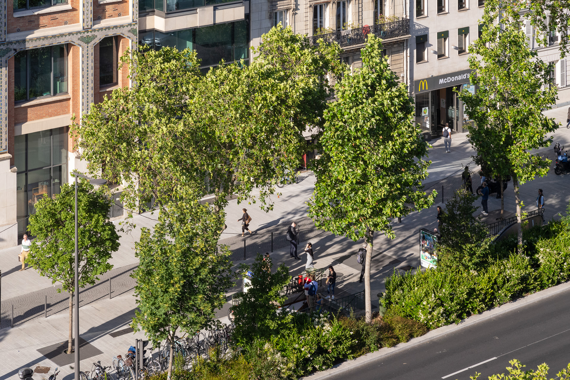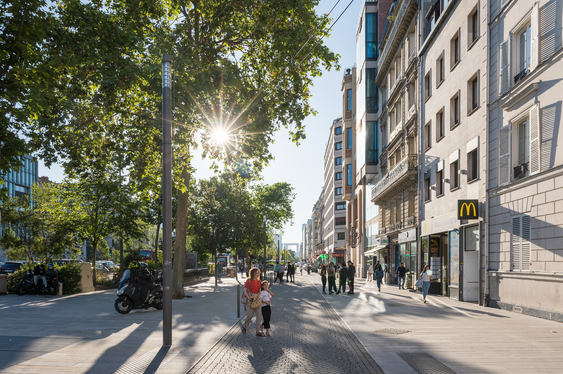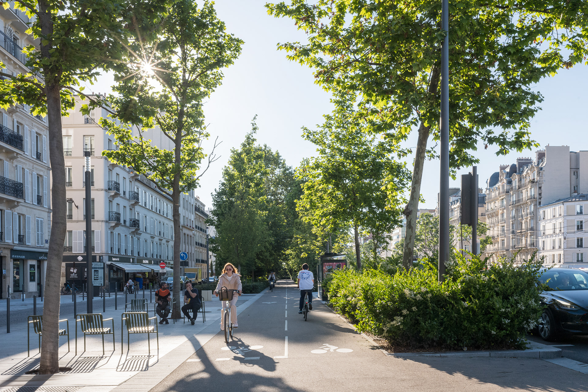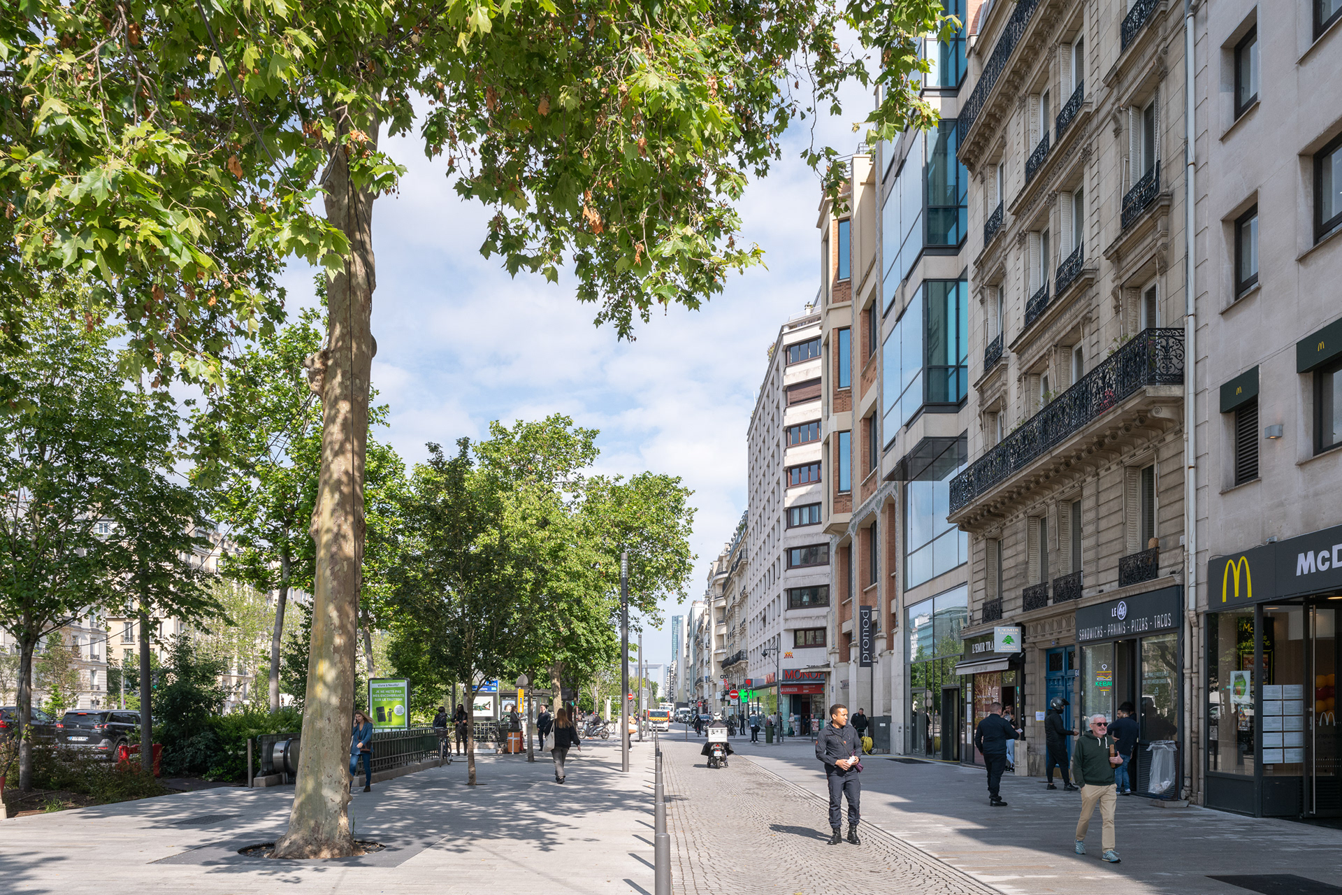 Sur l’avenue Charles-de-Gaulle, au cœur de l’Axe Majeur, Ilex libère l’espace occupé par l’automobile et transforme les contre-allées