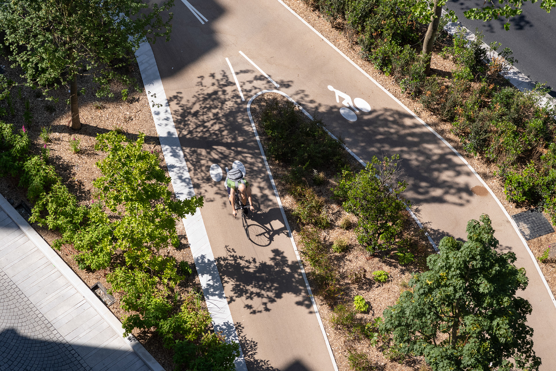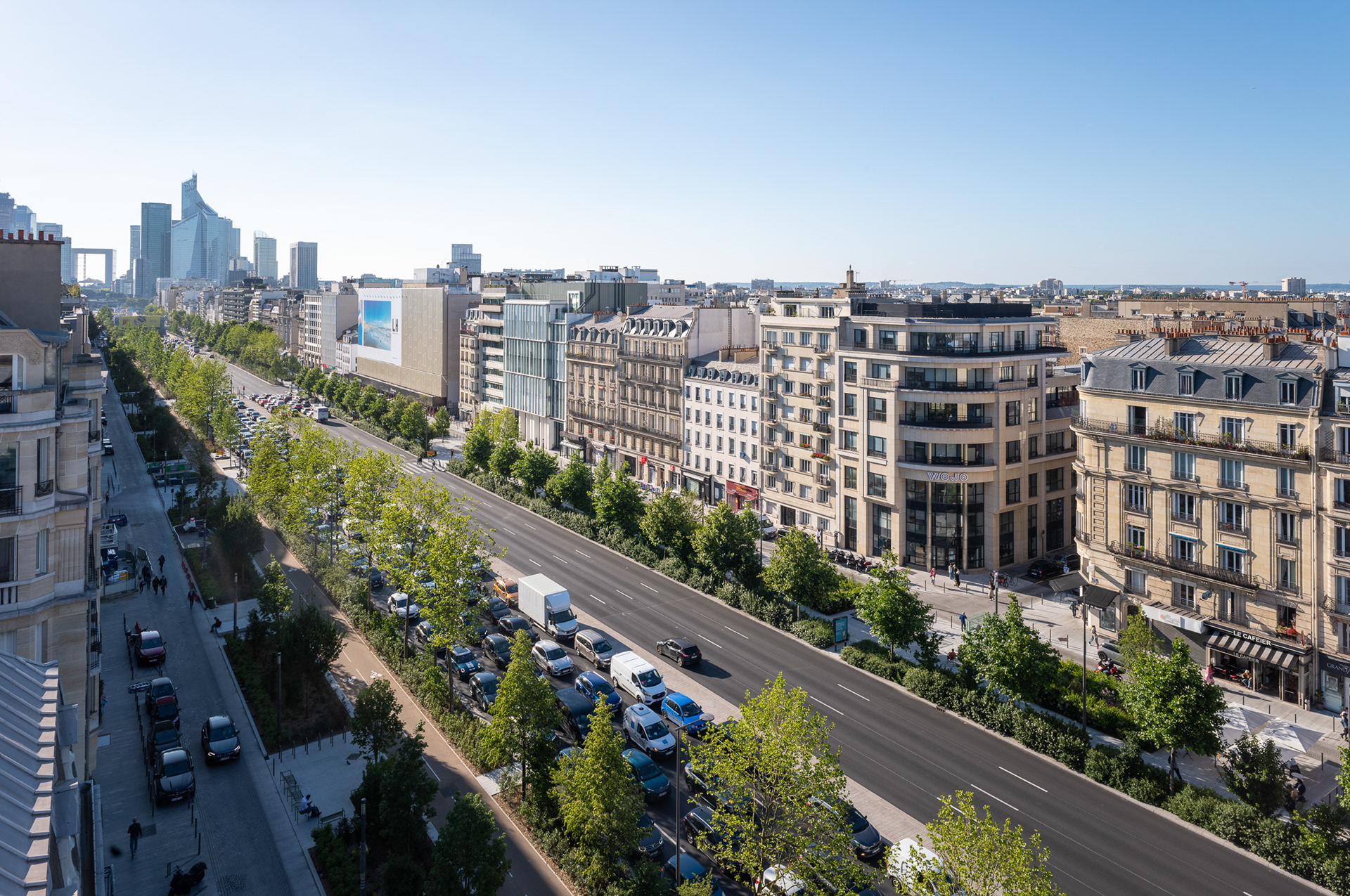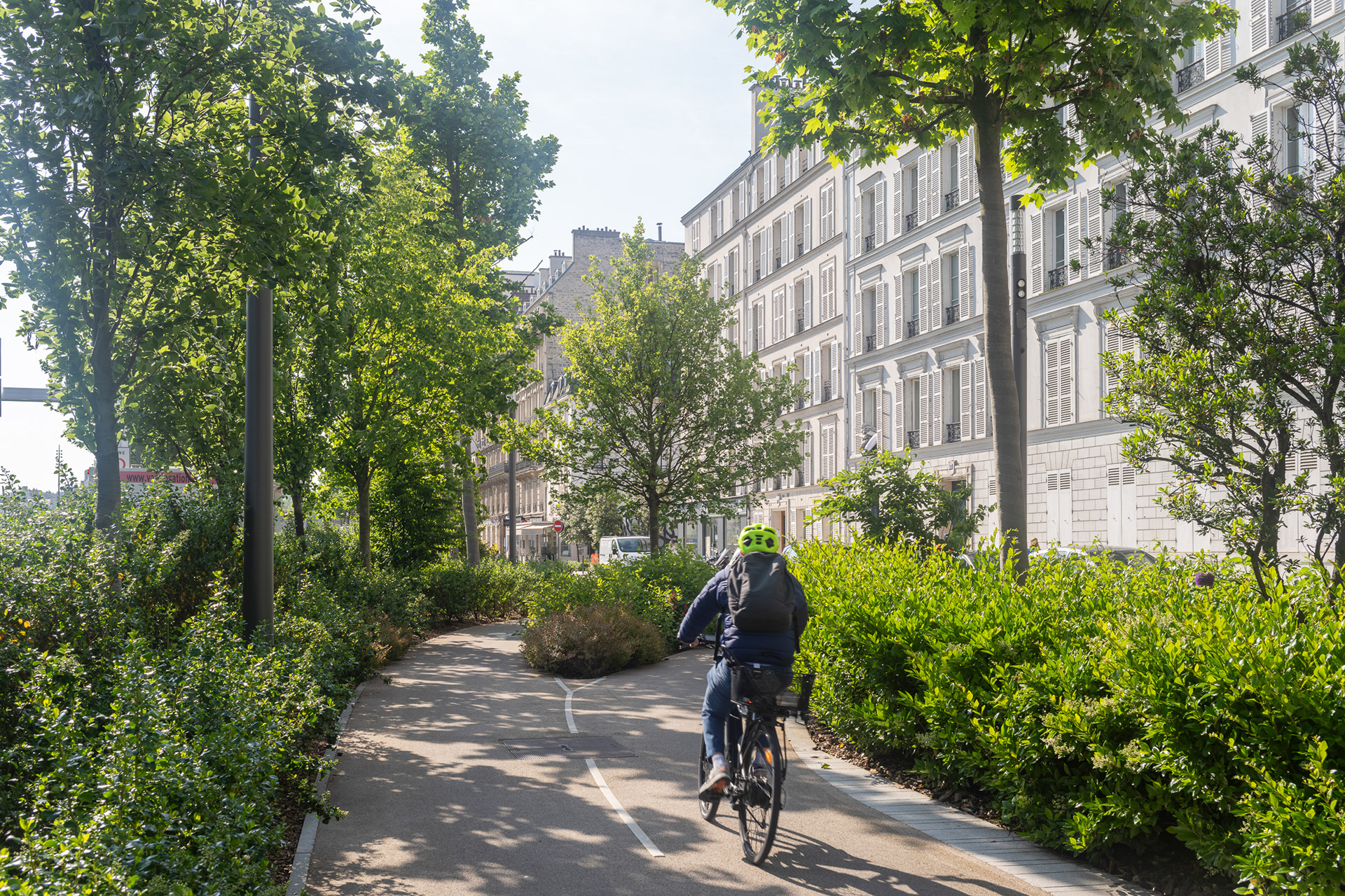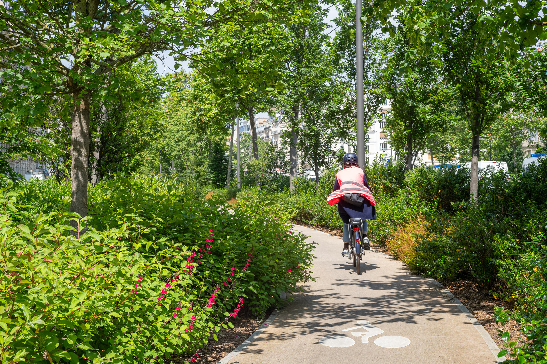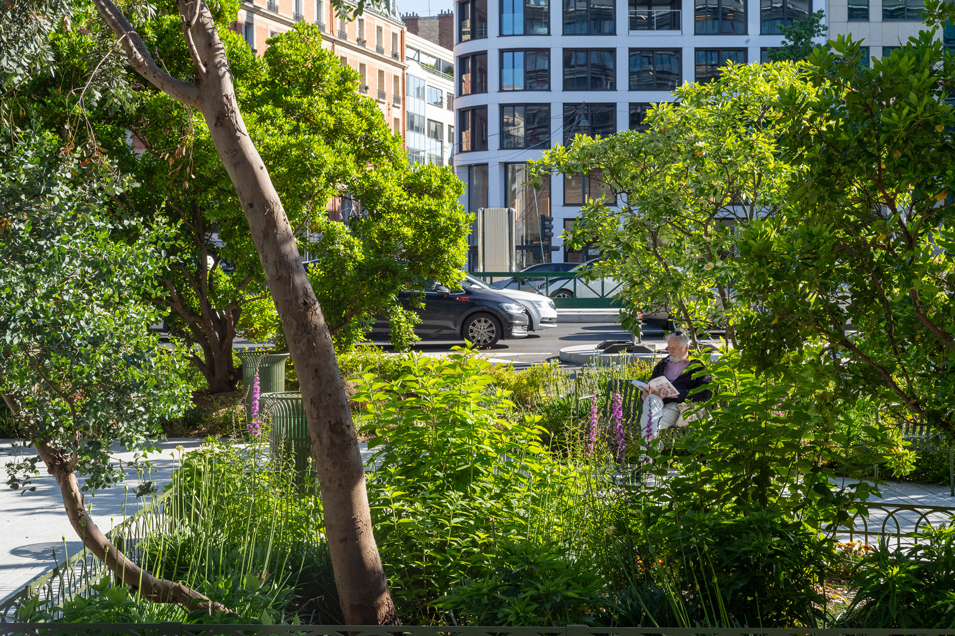 Sur l’avenue Charles-de-Gaulle, au cœur de l’Axe Majeur, Ilex libère l’espace occupé par l’automobile et transforme les contre-allées