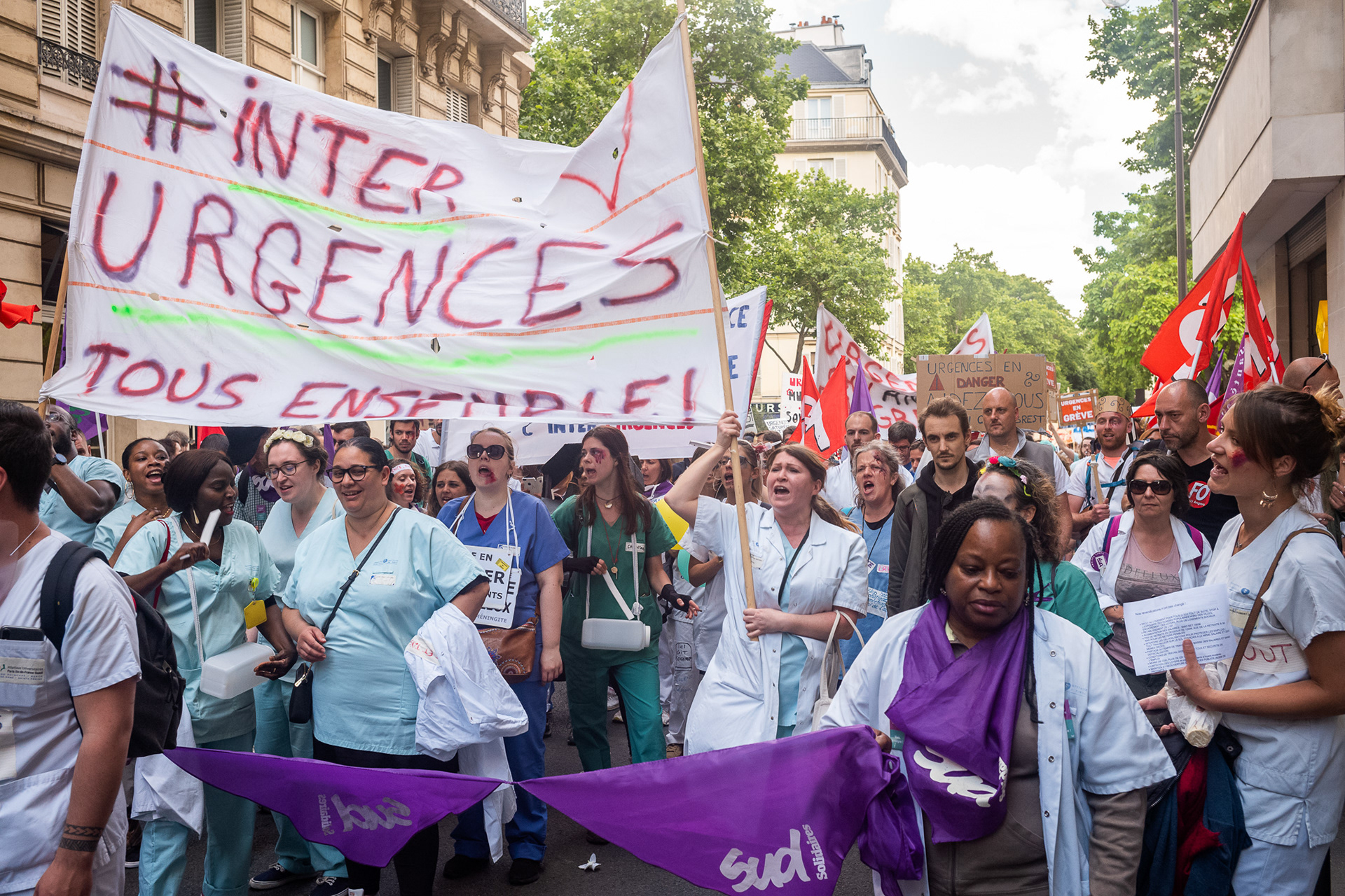 Grèves aux urgences : Manifestation nationale des urgentistes à Paris le 6 juin 2019.